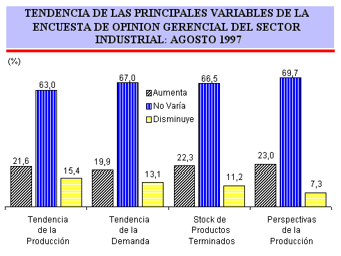 En agosto de 1997, la producción industrial, sería mayor en relación a lo registrado en el mes de julio. Así lo indica el saldo de opinión obtenido (6,2%).