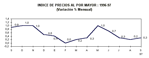 3.2 LOS PRECIOS MAYORISTAS CRECIERON EN 0,33% EN SETIEMBRE DE 1997