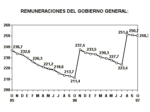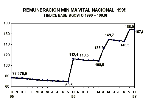 En octubre de 1997, la Remuneración Mínima Vital (RMV), fijada para los trabajadores sujetos al régimen de la actividad privada, en su mayoría recién ingresados a laborar, ascendió a S/. 345,00 mensuales ó S/. 11,50 diarios. Este monto se estableció mediante el Decreto de Urgencia Nº 074-97 y entró en vigencia desde el 01 de setiembre de 1997.