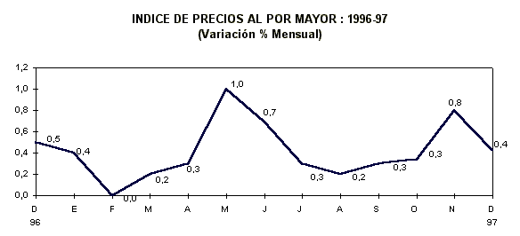 3.2 LOS PRECIOS MAYORISTAS CRECIERON EN 0,43% EN DICIEMBRE DE 1997