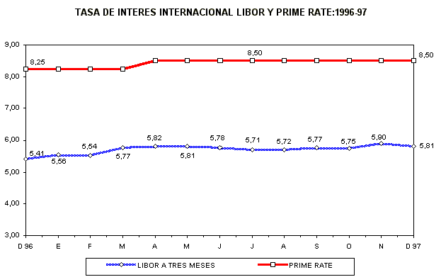 En diciembre del año anterior, la tasa de interés preferencial Prime Rate de Nueva York cerró en 8,50%, sin embargo la Libor a 3 meses descendió de 5,90% a 5,81%.