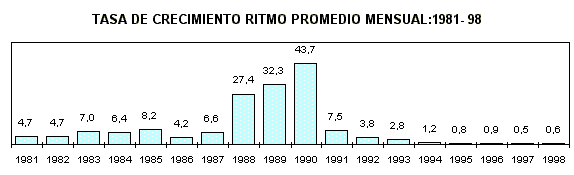 El Indice de Precios al Consumidor de Lima Metropolitana, indicador oficial de la inflación, registró en el primer mes de 1998, una variación de 0,91%. De esta manera, la variación anualizada de la inflación correspondiente al período febrero 1997 a enero de 1998 (últimos doce meses) es de 6,91%. En el caso del fenómeno del Niño de 1983, la inflación en diciembre de 1982 fue de 4,5% subiendo a 7,6% en el mes de enero de 1983, es decir, la inflación se incrementó en más de tres puntos.