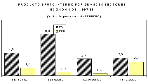 SECTORES | 1997 (P) | 1998(P) | FEB | MAR | ABR | MAY | JUN | JUL | AGO | SET | OCT | NOV | DIC | ENE | FEB |