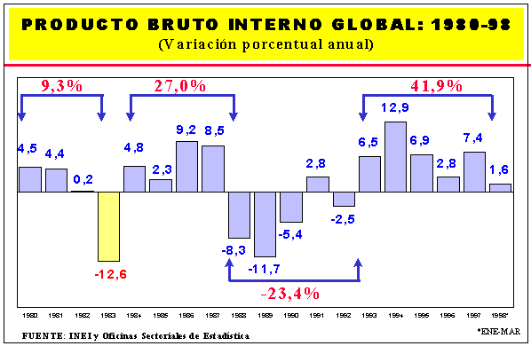 1.104 PRODUCTO BRUTO INTERNO, SEGUN SECTORES ECONOMICOS: 1986-98