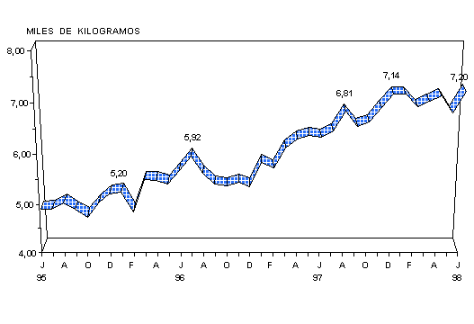 VOLUMEN DE LA PRODUCCION DE ORO : 1995-98