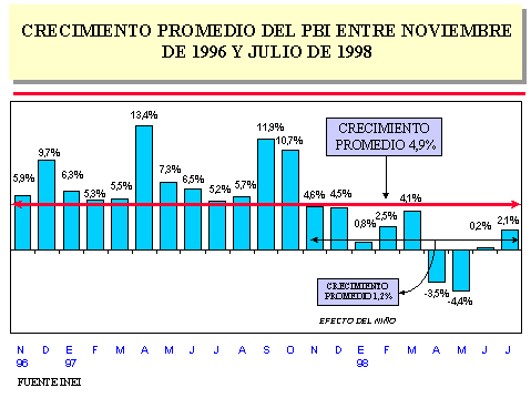 Entre enero y julio de 1998, la actividad productiva alcanzó un crecimiento acumulado de 0,1%, en relación a similar período del año pasado, comportamiento favorable, a pesar de los efectos negativos del fenómeno de El Niño,