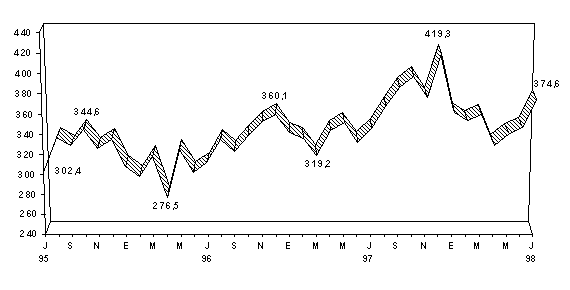 | 1997(P) | 1998(P) | JUL | AGO | SET | OCT | NOV | DIC | ENE | FEB | MAR | ABR | MAY | JUN | JUL |