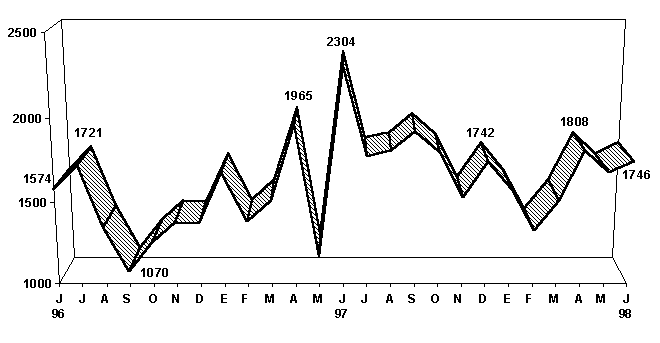 | 1997 (P) | 1998 (P) | JUN | JUL | AGO | SET | OCT | NOV | DIC | ENE | FEB | MAR | ABR | MAY | JUN |