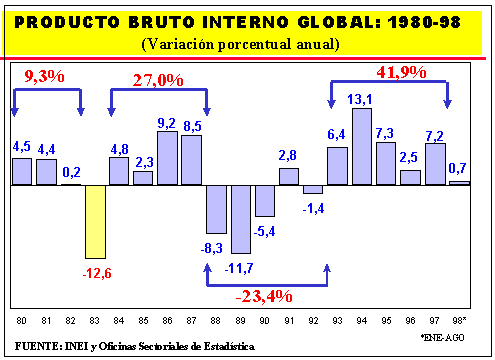 1.104 PRODUCTO BRUTO INTERNO, SEGUN SECTORES ECONOMICOS: 1986-98
