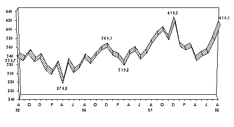 | 1997(P) | 1998(P) | AGO | SET | OCT | NOV | DIC | ENE | FEB | MAR | ABR | MAY | JUN | JUL | AGO |