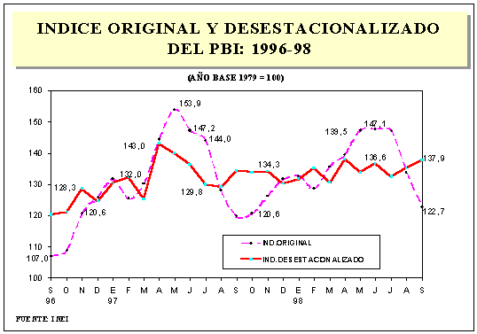 1.103 INDICE ORIGINAL Y DESESTACIONALIZADO DEL PRODUCTO BRUTO INTERNO: 1997-98