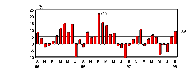 Variación % mensual respecto a similar mes del año anterior | |||||||||||||