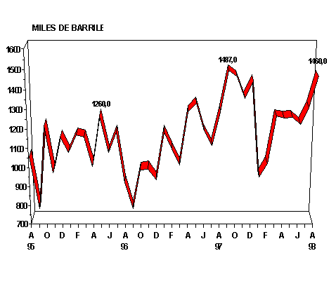 VOLUMEN DE PRODUCCION DE PETROLEO DIESEL: 1995-98