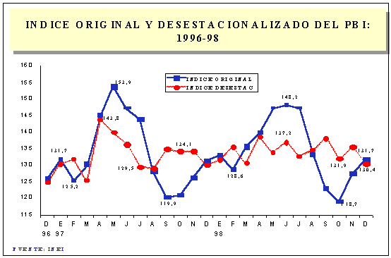 1.103 INDICE ORIGINAL Y DESESTACIONALIZADO DEL PRODUCTO BRUTO INTERNO: 1997-98