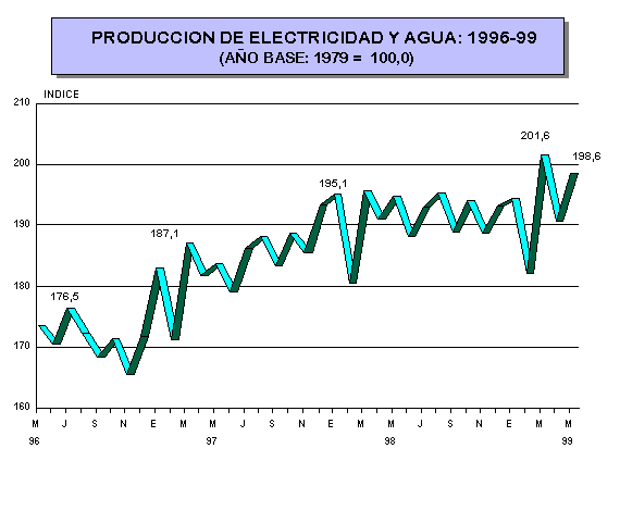 En mayo del presente año, el nivel de generación eléctrica de los Sistemas Interconectados Centronorte, Sur, Aislados y Autoproductores alcanzó la cifra de 1 millón 607 mil GWh, superando en 2,6% a la producción registrada en igual mes del año 1998. Este comportamiento obedece al incremento en la generación eléctrica de las empresas de Servicio Público en 2,8% y de los Autoproductores en 0,8%.
