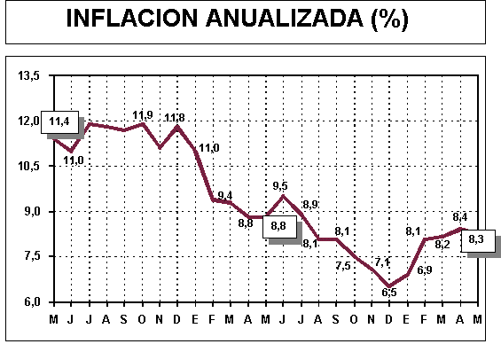 el resultado inflacionario acumulado a mayo de 1998 es inferior