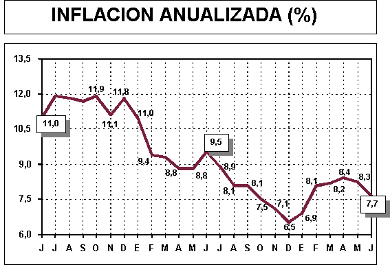 mayo de este año y en el mes de junio baja al 7,7% de inflación