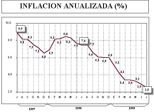 variación anual (agosto 1998 - julio 1999), de 2,51%.