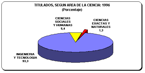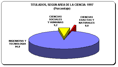 TITULADOS, SEGUN AREA DE LA CIENCIA: 1996-97