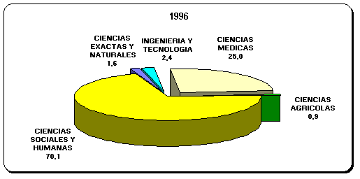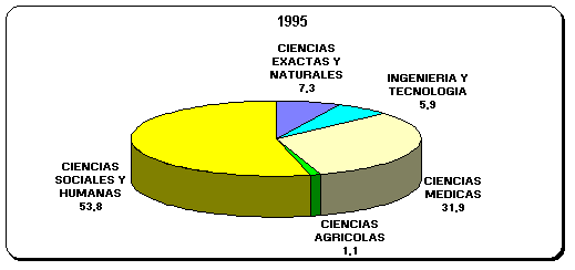 TITULADOS, SEGUN AREA DE LA CIENCIA: 1995-96