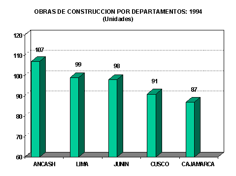 7.31 NUMERO DE DISTRITOS POR OBRAS DE CONSTRUCCION, SEGUN DEPARTAMENTO, 1994