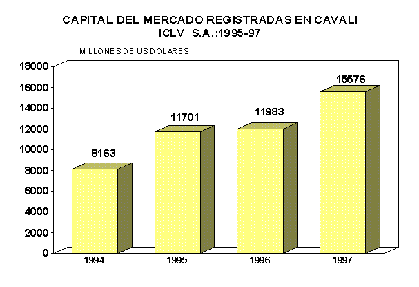 Nota: CAVALI ICLV S.A., creada en mayo de 1997, es una sociedad anónima constituída y organizada con arreglo a la Ley del Mercado de Valores, D.L. 861, que tiene por objeto la liquidación de operaciones y el registro de valores representados por anotaciones en cuenta. |