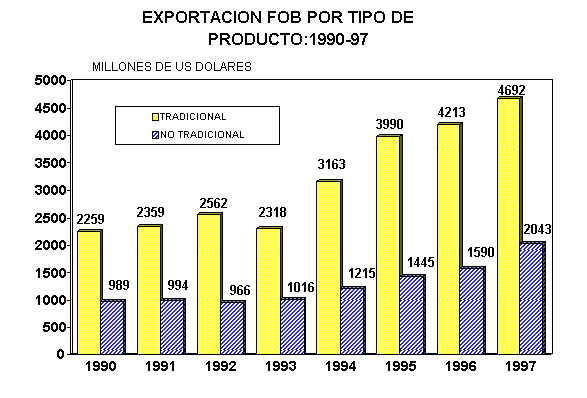 16.7   EXPORTACION FOB, SEGUN TIPO DE PRODUCTO, 1988-97
