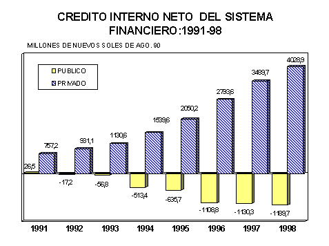 14.19   CREDITO INTERNO NETO DEL SISTEMA FINANCIERO AL SECTOR PUBLICO Y PRIVADO, 1971 - 99