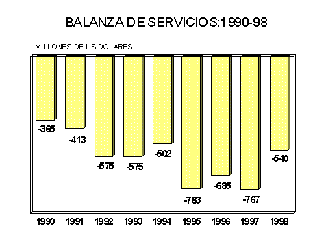 16.3   BALANZA DE SERVICIOS, 1990 - 99
