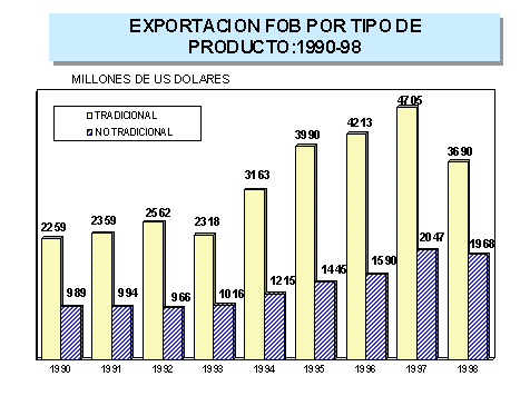 16.7   EXPORTACION FOB, SEGUN TIPO DE PRODUCTO, 1990-99