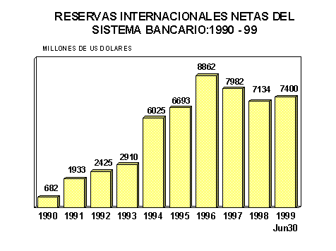 16.50   RESERVAS INTERNACIONALES NETAS DEL SISTEMA BANCARIO, SEGUN BANCO, 1990 - 99