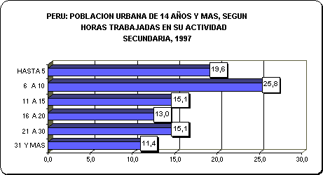 El 60,5% de la PEA Ocupada Urbana que desempeña alguna actividad secundaria, labora como máximo 15 horas semanales, destacando los que trabajan de 6 a 10 horas (con el 25,8%).
