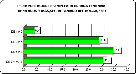 Cerca de las dos terceras partes de las mujeres desempleadas (64,6%) provienen de hogares con tres a seis miembros y un 31,2% de hogares con más de siete miembros.