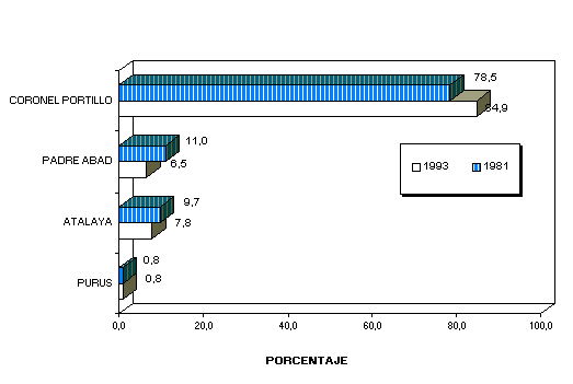 Del total de poblaci\n urbana, la provincia de Coronel Portillo alberga el 88,2%, en 1981 albergaba al 94,2% de la poblaci\n urbana del departamento.