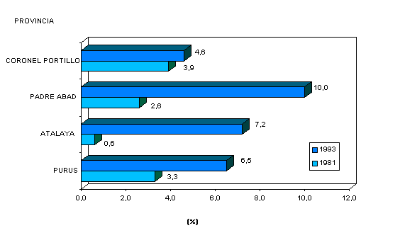 Las provincias de Padre Abad y Atalaya, aumentan notablemente su velocidad de crecimiento con respecto al perRodo intercensal 1972 - 1981.