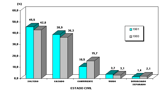 1981 sube a 15,7% en 1993. El número de personas divorciadas