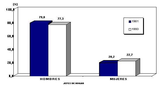 de mujeres jefes de hogar aumentó de 20,2% en 1981 a 22,7%
