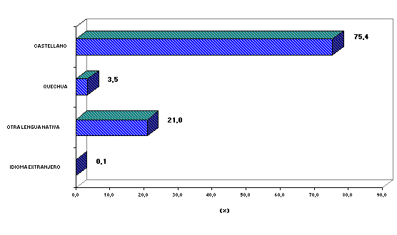 Por sexo, se encuentran proporciones similares al total departamental. A nivel de áreas, en el area rural se encuentra una gran proporción (25,5%) de personas que aprendieron otra lengua nativa en la niñez, a diferencia del quechua que fue aprendido sólo por el 2,8%.