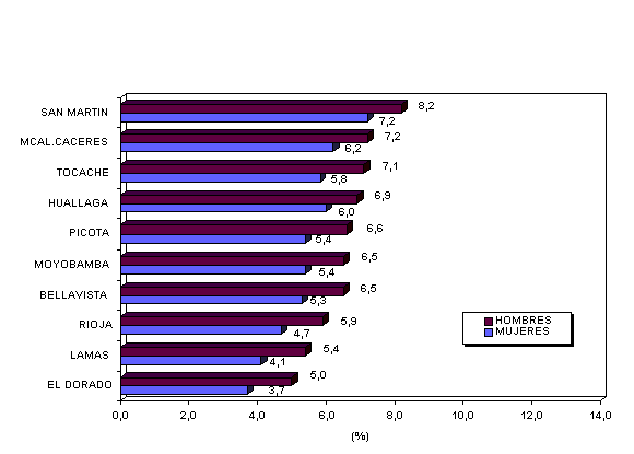 DPTO. DE SAN MARTIN: AÑOS PROMEDIO DE ESTUDIOS ALCANZADOS POR LA