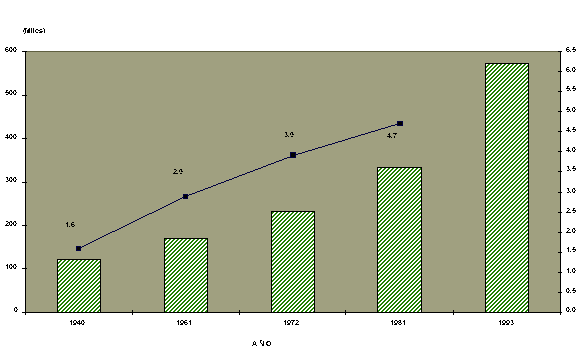 entre 1981 y 1993, experimentó una tasa de crecimiento