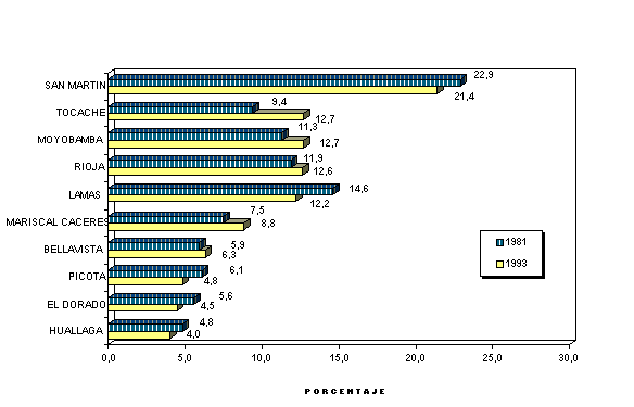 provincias en el orden siguiente: Tocache con 7,3%, Mariscal Cáceres