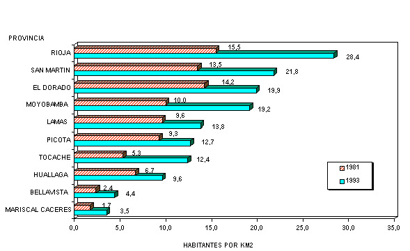 de provincias, estas son: El Dorado con 19,9 h/Km², Moyobamba