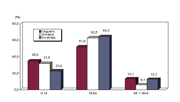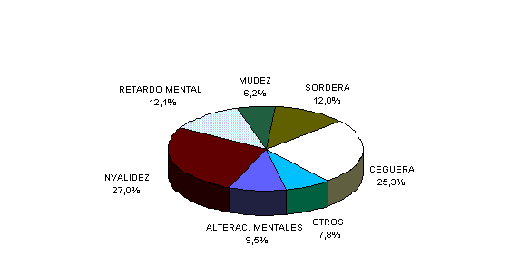 CEGUERA SORDERA MUDEZ RETARDO MENTAL ALTERACIONES MENTALES INVALIDEZ 1/ OTROS | 1750 837 574 840 654 1876 536 | 928 451 328 434 307 1096 270 | 822 386 246 406 347 780 266 | 24,8 11,8 8,1 11,9 9,3 26,5 7,6 | 24,3 11,8 8,6 11,4 8,1 28,7 7,1 | 25,3 11,8 7,5 12,5 10,7 24,0 8,2 |