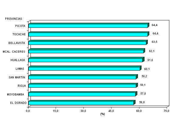 DPTO. DE SAN MARTIN: TASA DE ACTIVIDAD DE LA POBLACION DE 15 Y MAS AÑOS POR