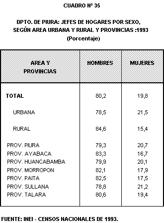 de jefes de hogar varones (83,3%) en tanto que en Sullana se encuentra