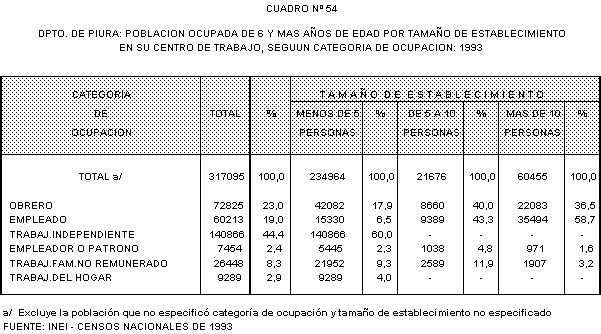 En los establecimientos con menos de 5 personas, el grupo de trabajadores independientes representan al 60,0% de la poblaci\n ocupada de 6 y m<s aZos, lo descrito permite inferir que dichos establecimientos conforman el sector informal de la economRa en el departamento de Piura.