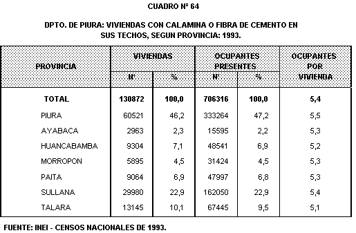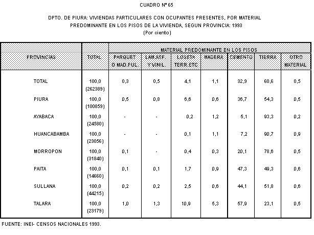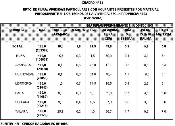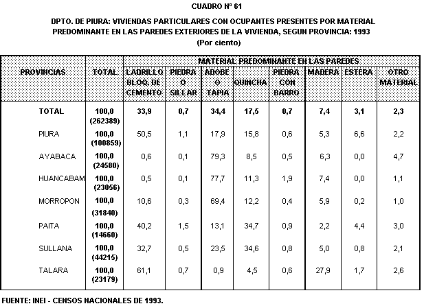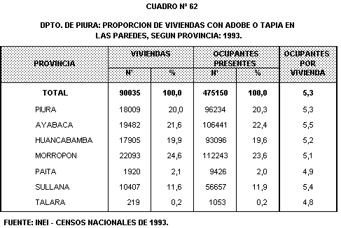 bloque de cemento en sus paredes. Las provincias de Talara y Piura