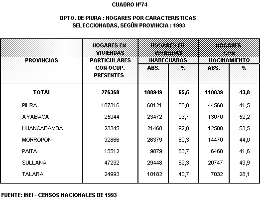 muestran que el 53,9% de los hogares del departamento de Piura,