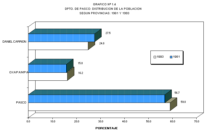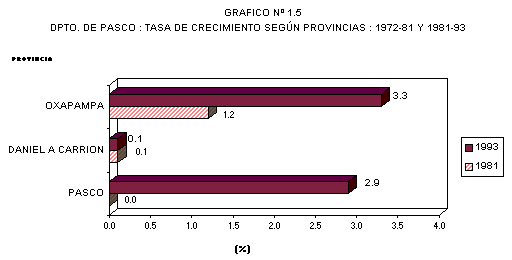 En el período intercensal 1981 - 1993, las provincias de Pasco y Oxapampa, concentran una mayor proporción de población urbana, al pasar de 72,6% y 23,7% en 1981 a 74,2% y 31,1%, en 1993.