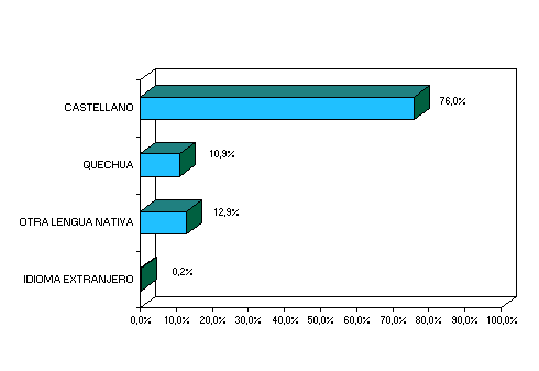 Segdn el censo de 1993, el 76,0% de la poblaci\n a nivel departamental, manifest\ haber aprendido el castellano como lengua materna, una proporci\n importante (12,9%) aprendi\ otra lengua nativa y 10,9% aprendi\ quechua.